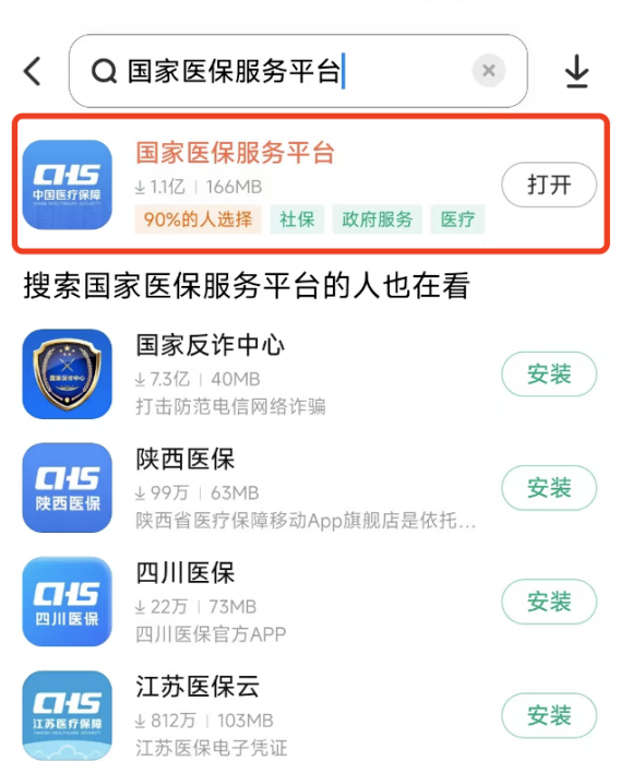 1.在手机应用商店中下载国家医保服务平台APP。