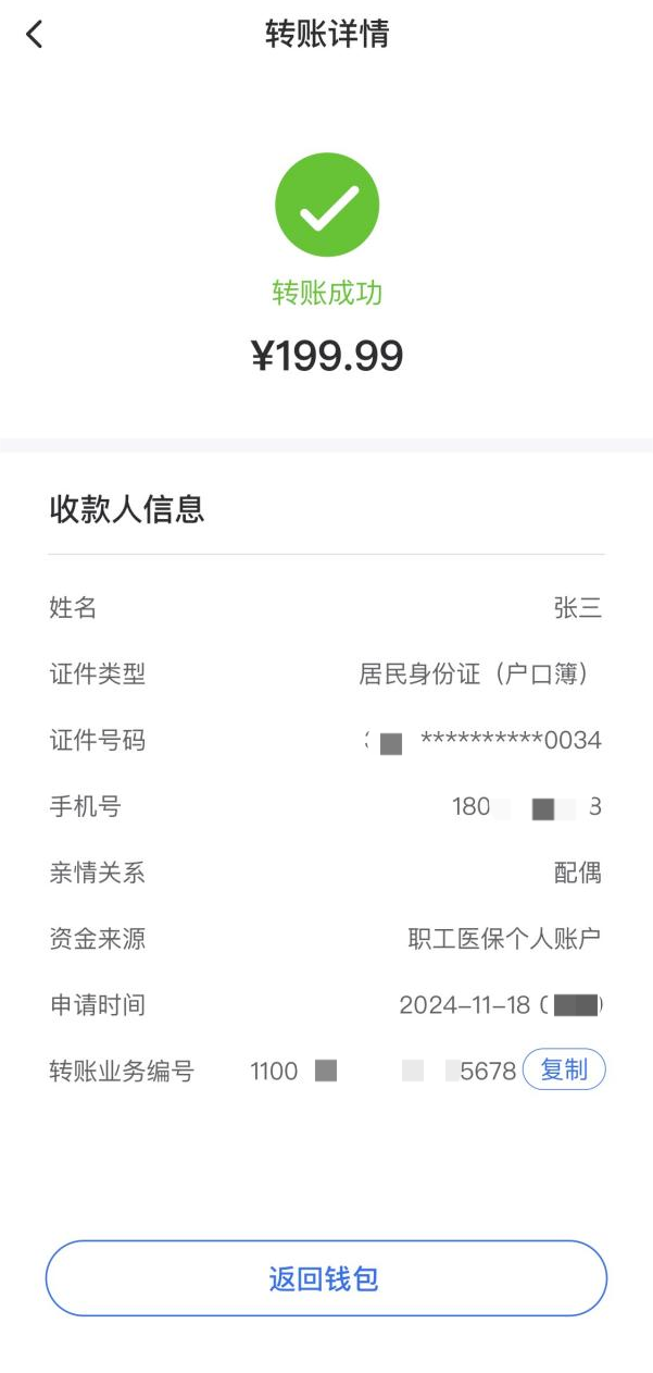 温馨提示:使用“医保钱包”,需要转账人和收款人的地区均开通了“医保钱包”功能,才能进行转账哦!